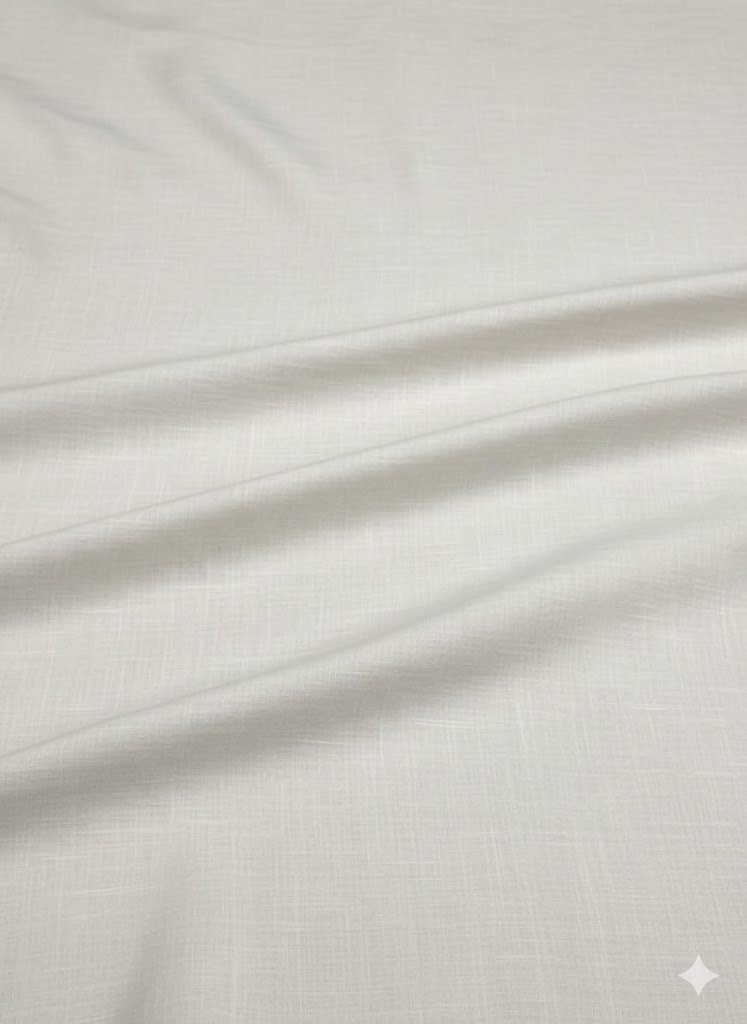 Lengvas–vidutinio tankumo audinys yra laidus orui, gerai sugeria drėgmę ir pasižymi natūraliu, minkštu kritimu. Šios savybės leidžia audinį naudoti įvairiuose sprendimuose, kuriuose svarbus komfortas, šviesumas ir natūrali tekstūra. Balta spalva yra švari, neutrali ir lengvai derinama tiek su šviesiomis, tiek su kontrastingomis spalvų paletėmis, todėl audinys tinka ilgalaikiams, ne sezoniškiems projektams.