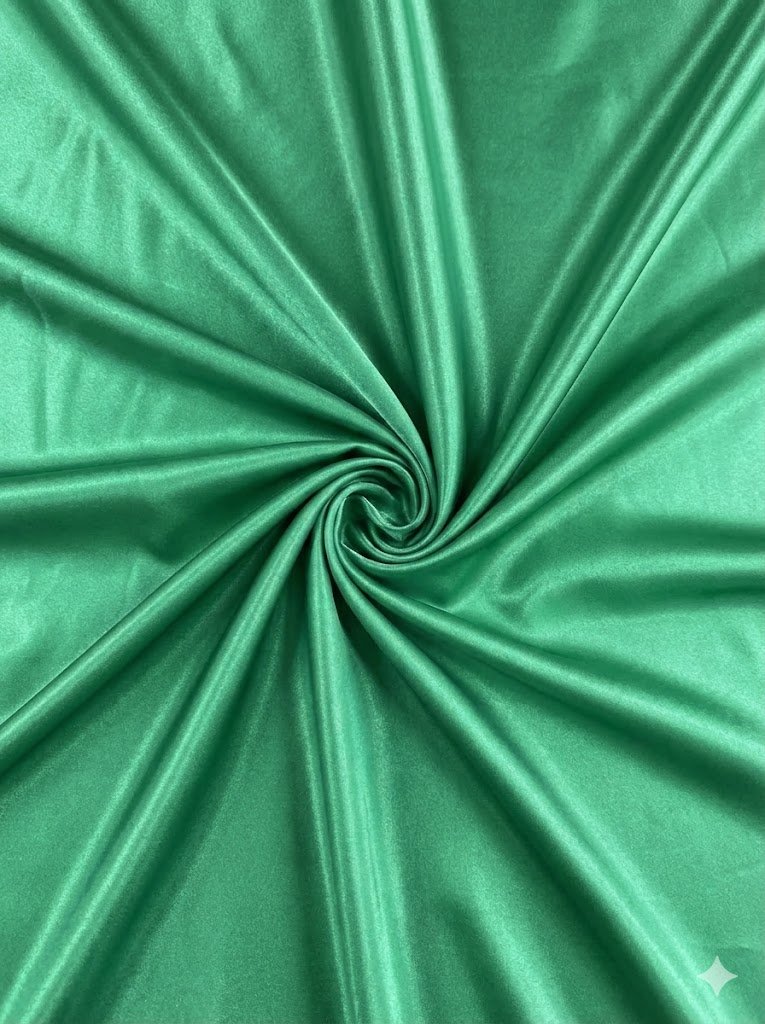 Tai patikimas pasirinkimas ieškantiems žalios spalvos blizgaus atlasinio audinio, kuris derina estetiką, praktiškumą ir universalų pritaikymą drabužių bei dekoro projektuose.