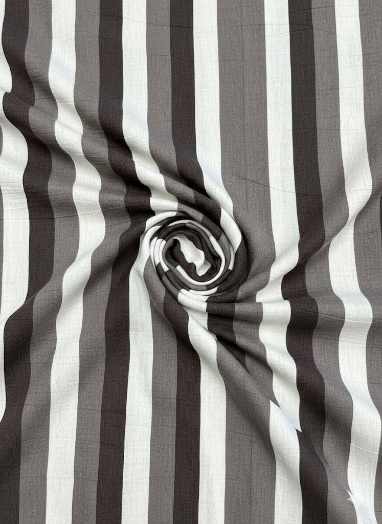 Dryžuotas lininis audinys – tai natūralaus pluošto tekstilė, išsiskirianti aiškiai juntama lino struktūra, matiniu paviršiumi ir natūraliu kritimu. Audinys pagamintas iš 100 % lino, todėl išlaiko visas būdingas natūralaus lino savybes: laidumą orui, tekstūrinį paviršių ir autentišką vizualinį charakterį. Vertikalūs dryžiai suteikia audiniui grafinį ritmą ir struktūruotą vaizdą.