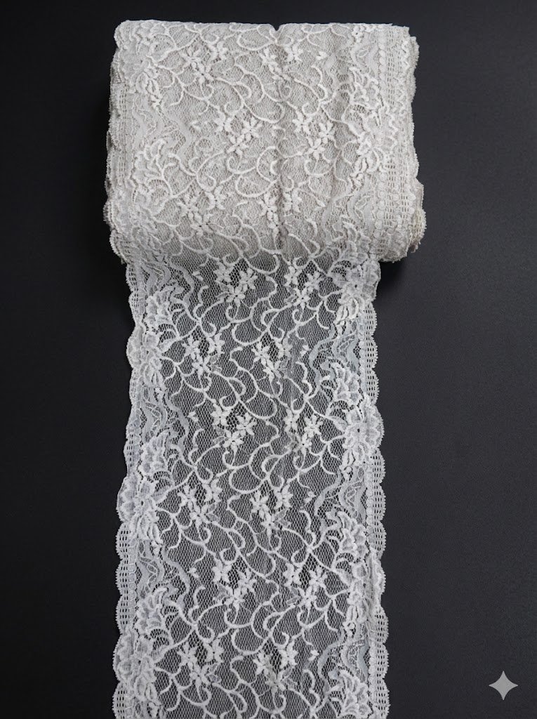 Elastinga nėrinių juosta 20 cm pločio skirta drabužių ir tekstilės gaminių apdailai. Tai labai plati elastinga nėrinių juosta, naudojama projektuose, kuriuose reikalingas ryškus dekoratyvinis sprendimas ir minkštas prigludimas. Išraiškingas gėlių ir banguotas raštas suteikia gaminiui vizualinio lengvumo.