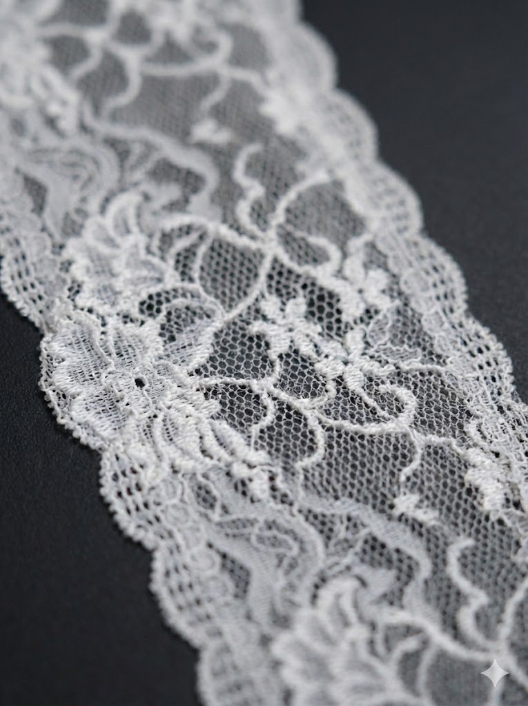 Poliesterio ir elastano sudėtis suteikia juostai elastingumo. Medžiaga gražiai prisitaiko prie formos ir padeda išlaikyti struktūrą. Dėl to elastinga nėrinių juosta 20 cm pločio tinka siuviniams, kuriuose svarbus ir komfortas, ir estetinė išvaizda.