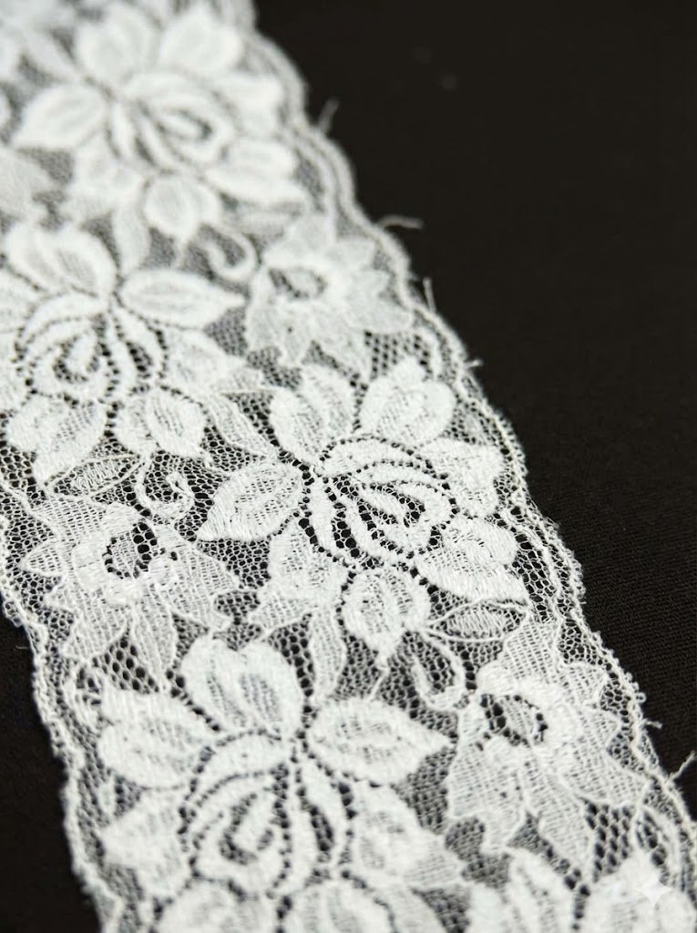 Elastinga nėrinių juosta su klasikiniu gėlių raštu, skirta drabužių ir tekstilės gaminių apdailai. Poliesterio ir elastano sudėtis suteikia juostai lankstumo, leidžia gerai priglusti ir išlaikyti formą. Tinka lengvai, dekoratyviai apdailai siuvimo projektuose.
