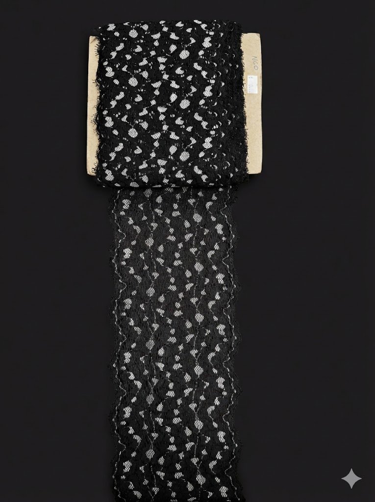 Elastinga nėrinių juosta 15 cm skirta dekoratyvinei ir funkcinei drabužių bei tekstilės gaminių apdailai. Juodos spalvos pagrindas su smulkiu kontrastiniu raštu sukuria ryškų, grafišką vizualinį efektą, kuris puikiai tinka tiek moderniems, tiek sceniniams ar proginiams sprendimams. Tai pasirinkimas, kai norisi aiškaus akcento ir išraiškingo dekoro.