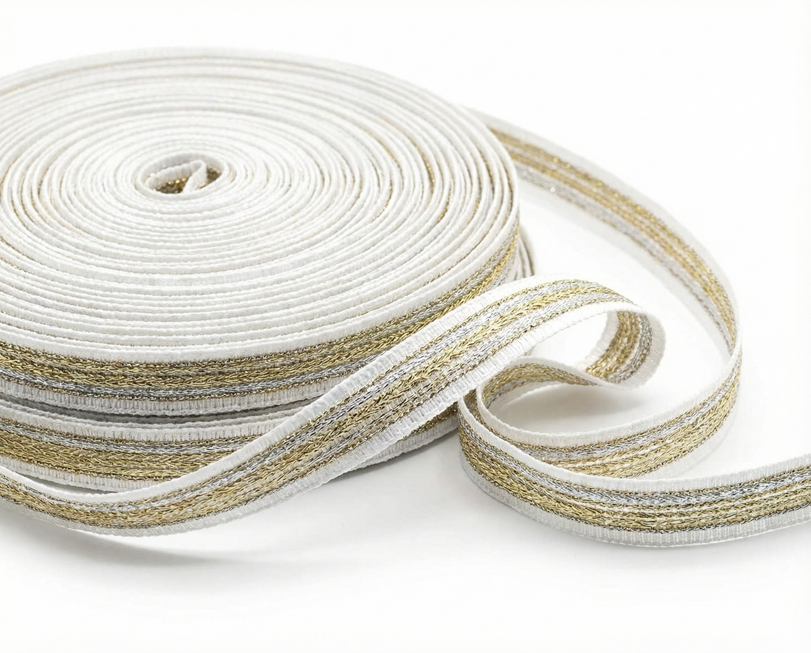 Juostelė yra vienpusė, puikiai tinka drabužių ar baldų apdailai.