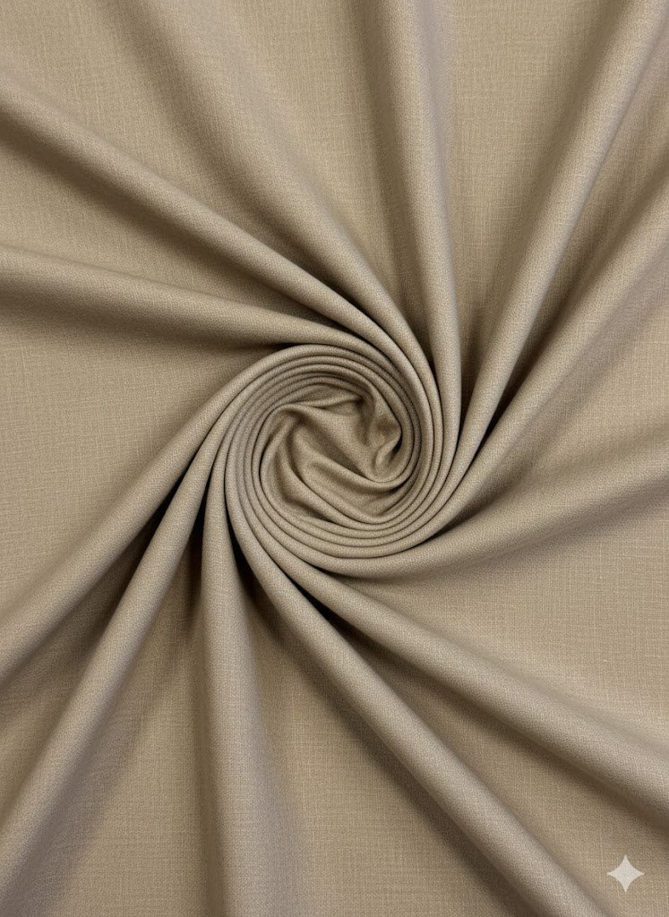 Audinys pasižymi tolygia, smulkia struktūra ir matiniu, lygiu paviršiumi. Vidutinio tankumo medžiaga lengvai formuojama, gerai krenta ir išlaiko tvarkingą siluetą. Neutralios smėlio, šiltos pilkšvai rusvos spalvos tonas yra universalus ir lengvai derinamas tiek su šviesiomis, tiek su tamsesnėmis spalvų paletėmis. Tai ypač aktualu kuriant ramius, ilgalaikius interjero ar drabužių sprendimus.