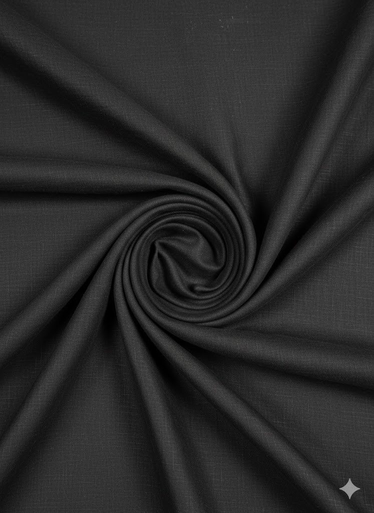 Klasikinė juoda spalva suteikia audiniui universalumo ir leidžia jį naudoti tiek minimalistiniuose, tiek elegantiškuose projektuose. Tai spalva, kuri lengvai derinama su įvairiomis medžiagomis, aksesuarais ir interjero sprendimais, todėl audinys tinkamas ilgalaikiam naudojimui be sezoniškumo.