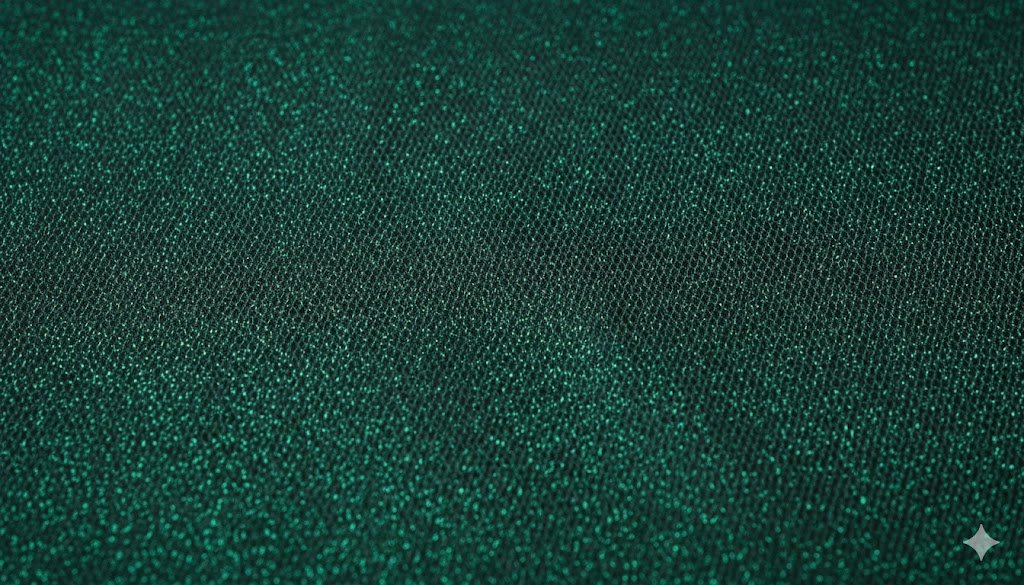 Minkštas tiulio audinys su ryškiu metalizuotu blizgesiu, pasižymintis lengva, permatoma ir plastiška struktūra. Audinys gerai krenta, subtiliai atspindi šviesą ir yra tinkamas dekoratyviems bei proginiams sprendimams, kur reikalingas vizualinis efektas.