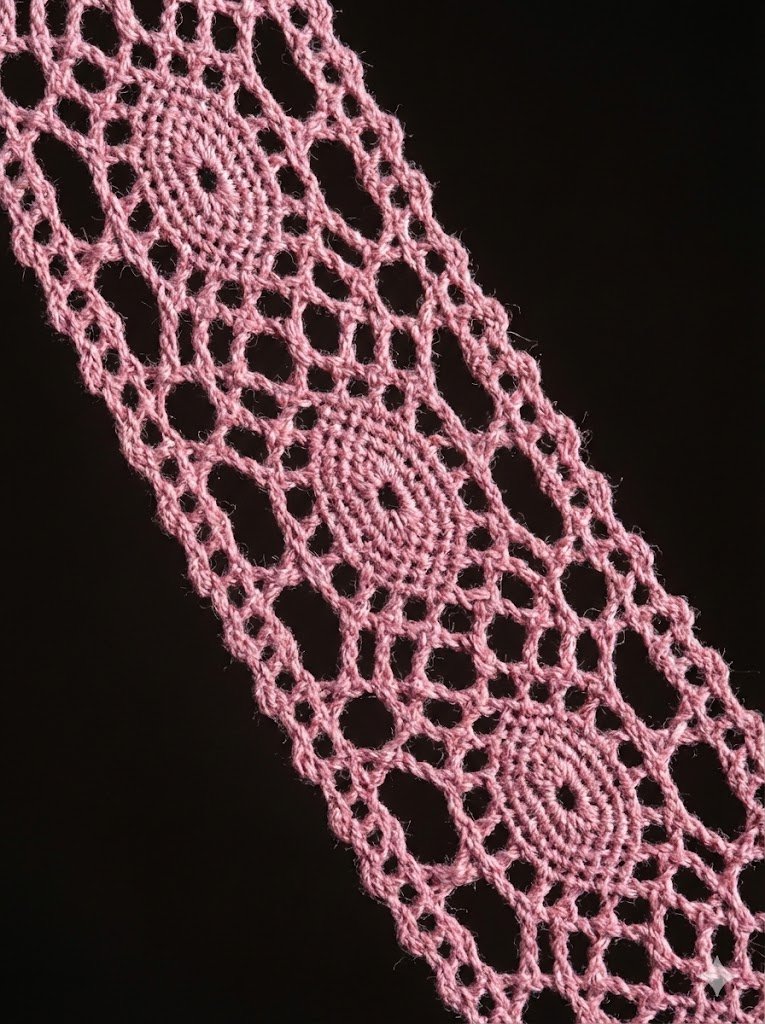Būkite pirmas aprašęs “Nėrinių juostelė (Plotis 4cm) – rožinė ažūrinė medvilninė”