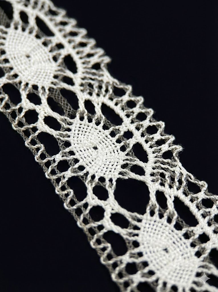 Nėrinių juostelė 4 cm skirta dekoratyvinei tekstilės apdailai, kai norimas lengvas ir elegantiškas akcentas. Gėlinis ažūrinis raštas su ritmiškai pasikartojančiais apvaliais motyvais suteikia gaminiams šviesumo ir vizualinio švarumo. Dėl to ši juostelė puikiai tinka tiek klasikiniams, tiek romantiško stiliaus sprendimams.