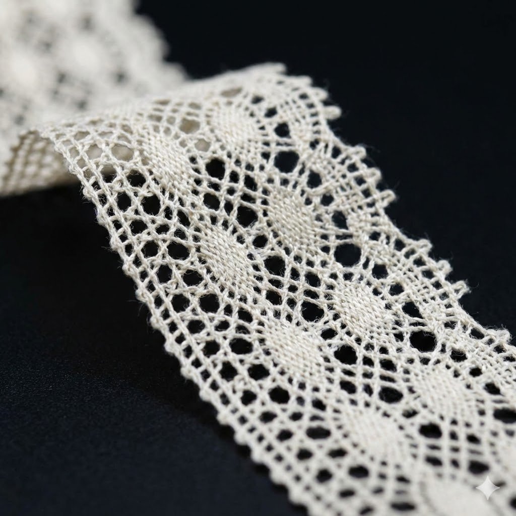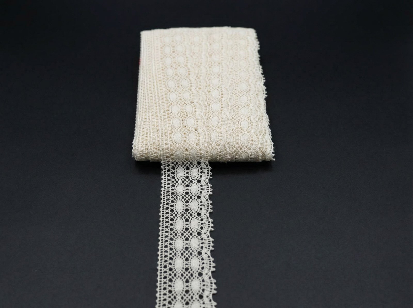 Nėrinių juostelė 5 cm pločio skirta dekoratyvinei tekstilės apdailai, kai reikalingas lengvas, tvarkingas ir estetiškai subalansuotas akcentas. Smulkaus ažūrinio rašto struktūra su ritmiškai pasikartojančiais ovaliniais motyvais suteikia gaminiams subtilumo ir vizualinio lengvumo, todėl juostelė puikiai dera tiek klasikiniuose, tiek universaliuose siuvimo sprendimuose.
