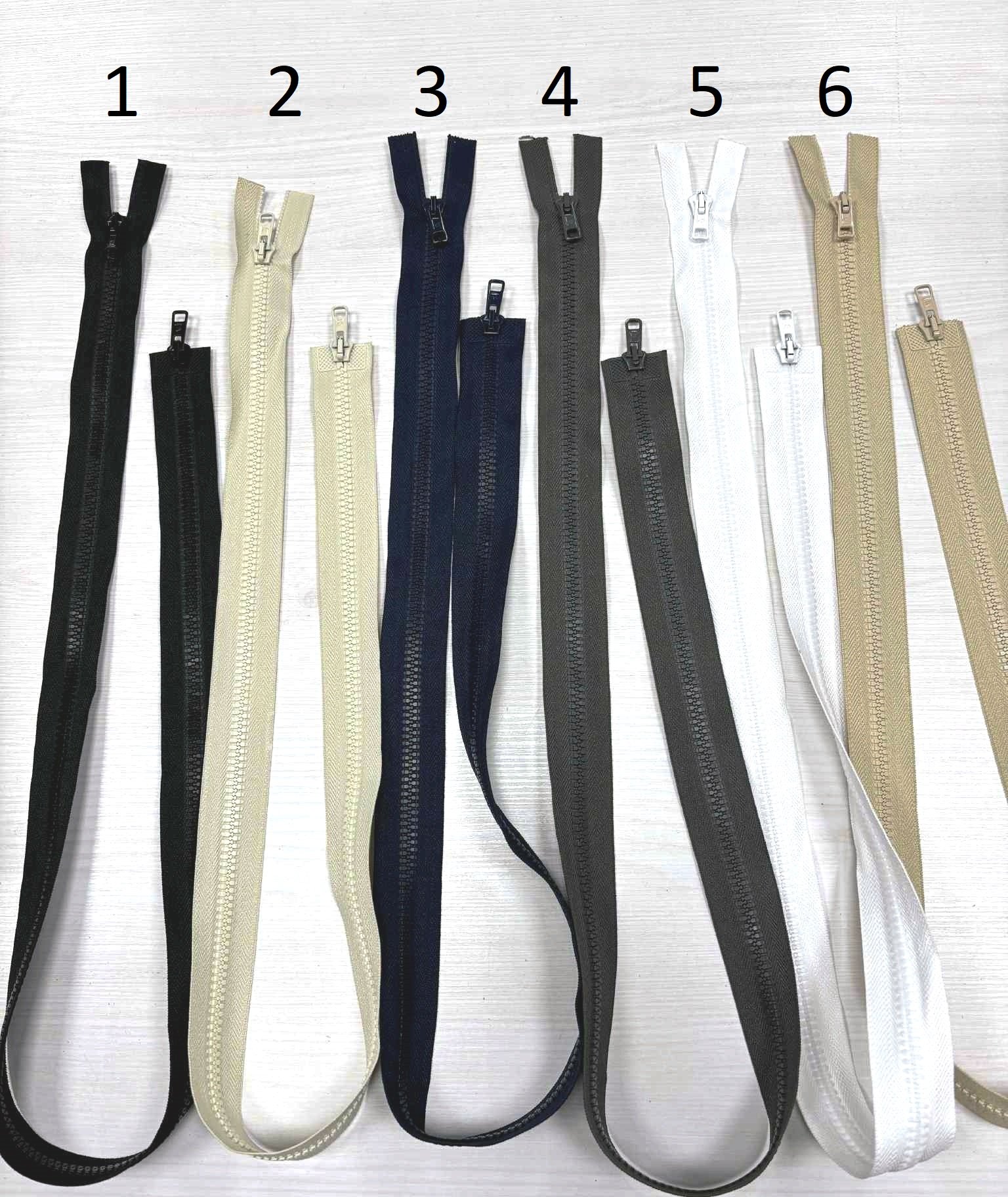 Tai 5 numerio užtrauktukas stambesniais plastikiniais dantukais. Šie užtrauktukai puikiai tinka striukėms, džemperiams iš storesnio audinio ir t.t.