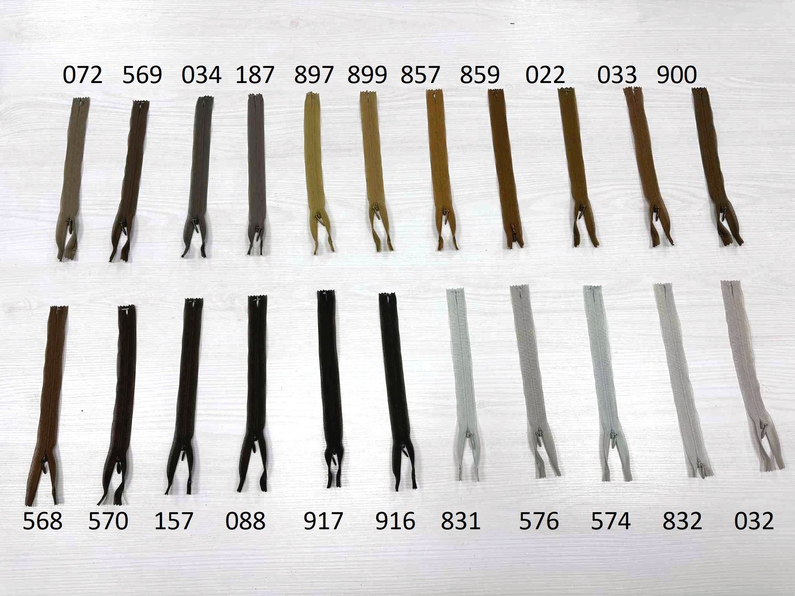 Paslėpti užtrauktukai 20 arba 60cm ilgio, ,,YKK” (176 – 215 spalvos iš 215)