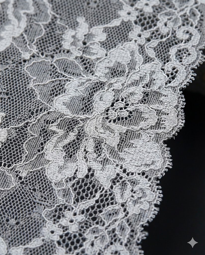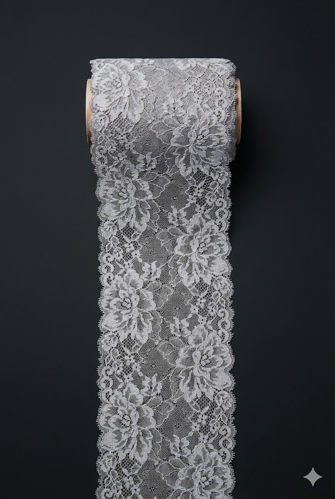 Smulkus ažūrinis fonas suteikia nėriniams lengvumo. Tuo pačiu gėlių raštas išlieka aiškus ir išraiškingas. Dėl tokio derinio juosta atrodo tvarkingai tiek iš arti, tiek iš toliau. Be to, ji lengvai derinama su lygiais ir tekstūriniais audiniais.