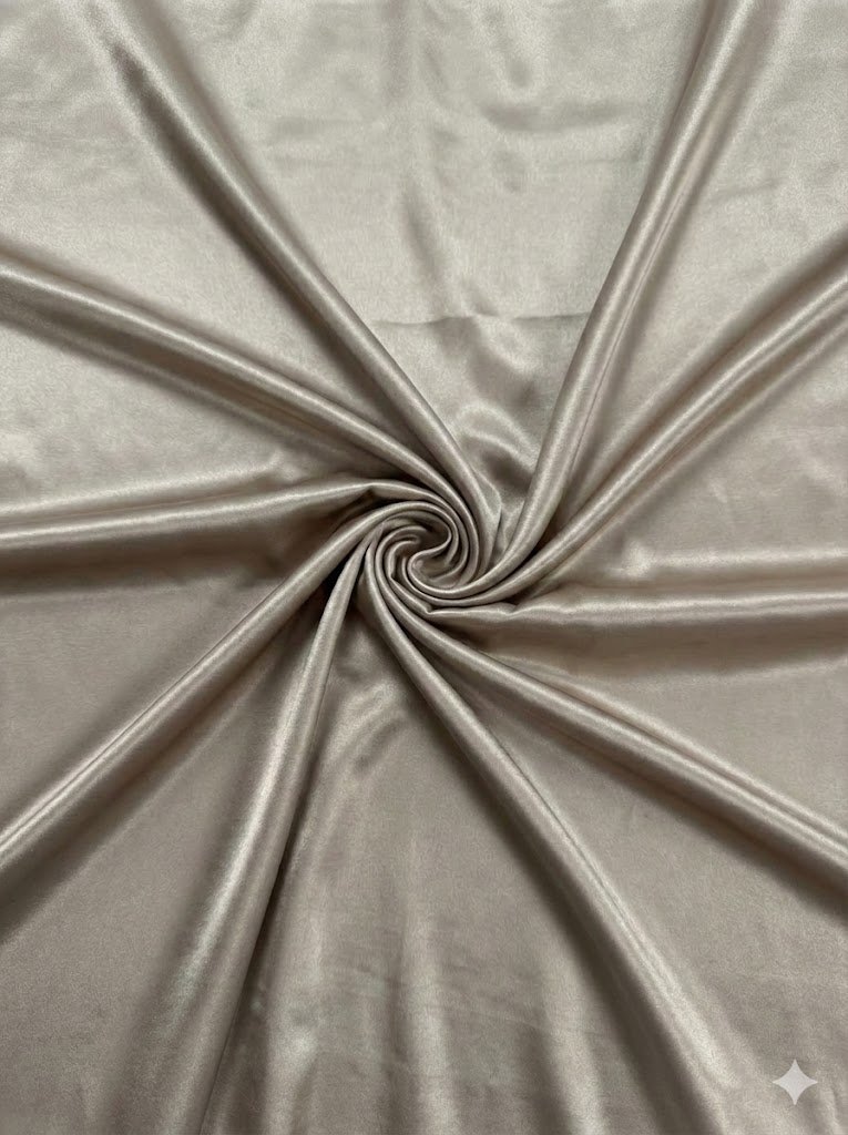 Šampano spalvos atlasinis audinys su poliesterio ir elastano sudėtimi yra universalus sprendimas, kai reikalingas neutralus atspalvis, elegantiškas paviršius ir lengvas audinio kritimas. Šis šampano spalvos atlasinis audinys poliesteris elastanas pasižymi švelniu, tolygiu blizgesiu, kuris subtiliai atspindi šviesą ir suteikia siuviniams estetinį vientisumą.