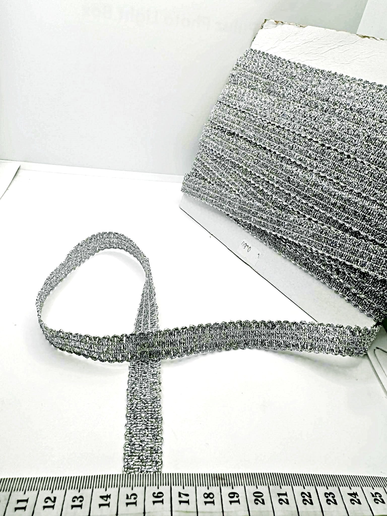 Sidabro spalvos siaura juostelė, puikiai tinkanti įvairioms dekoracijoms, papuošimams, rankdarbiams ir t.t.