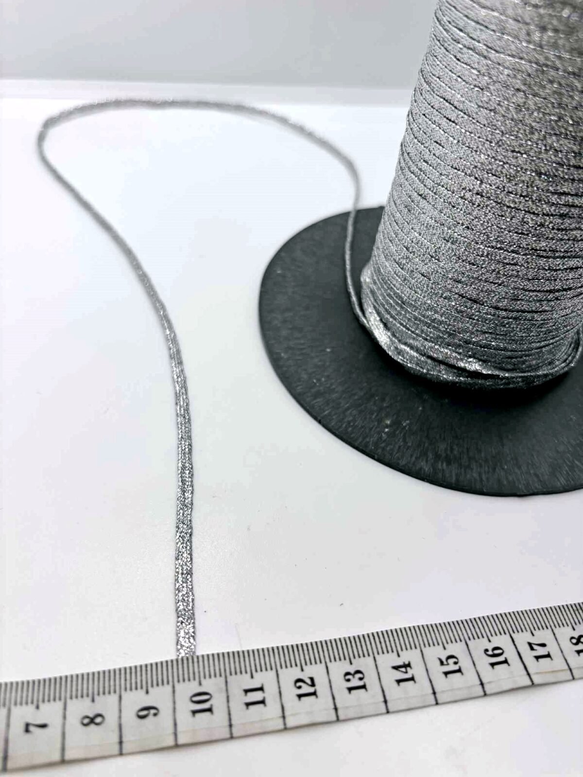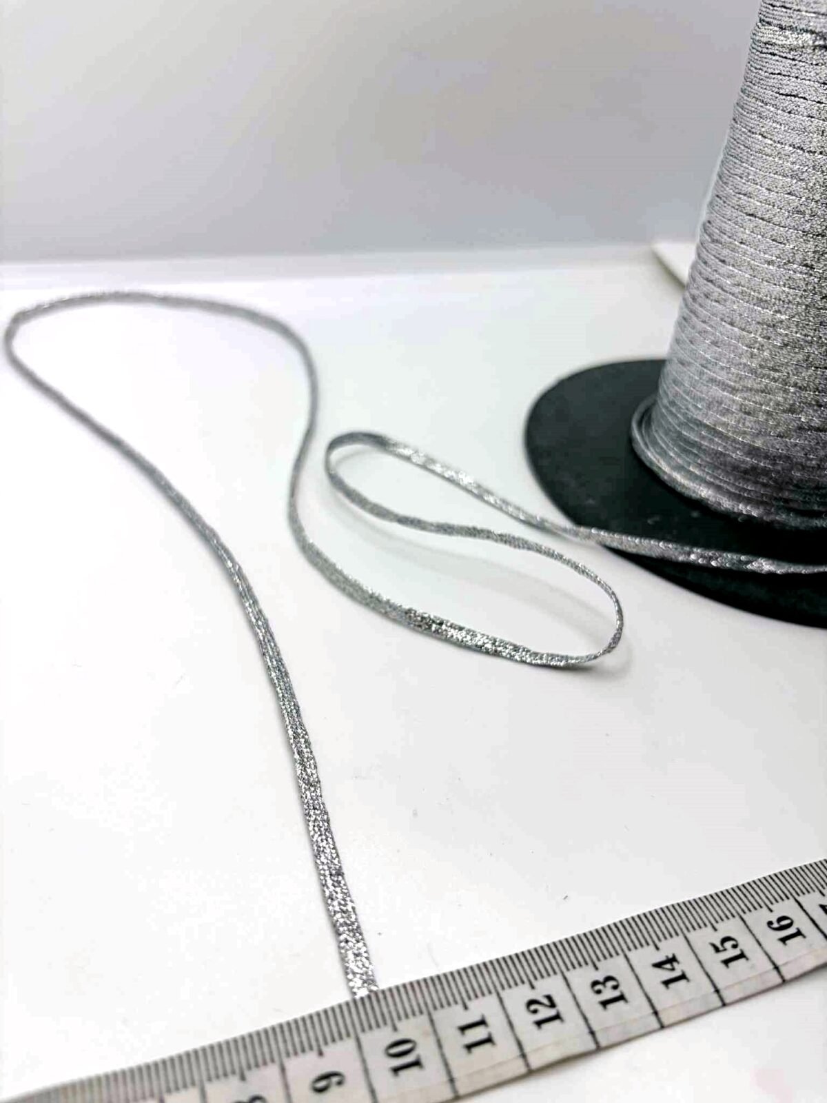 Sidabro spalvos siaura juostelė, puikiai tinkanti įvairioms dekoracijoms, papuošimams, rankdarbiams ir t.t.