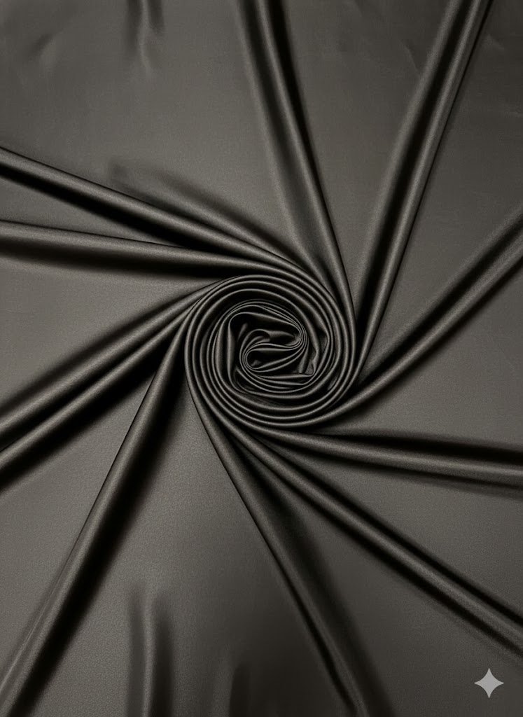 Tamsiai rudos, grafitinio tono spalvos šilko audinys su elastanu yra patikimas pasirinkimas vakarinei ir proginei aprangai bei aukštos kokybės moteriškiems drabužiams. Jis skirtas tiems atvejams, kai reikalingas elegantiškas, gilus atspalvis, komfortas ir profesionalus rezultatas.