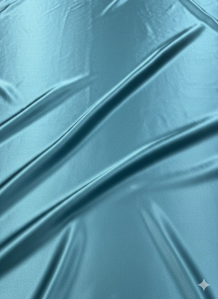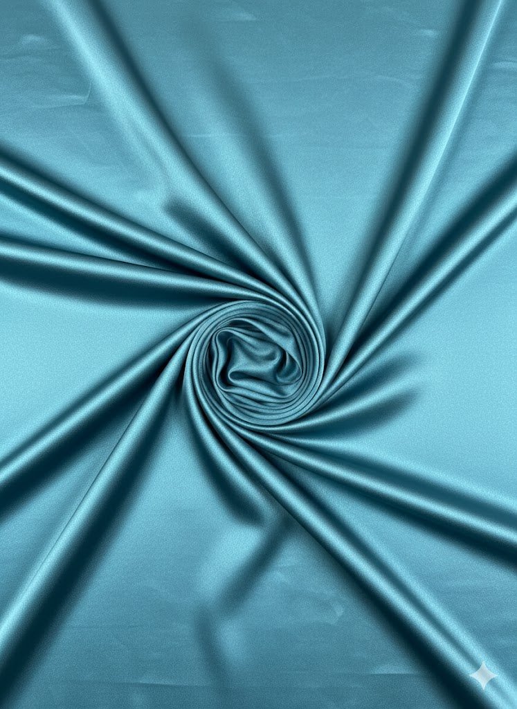 Paviršius yra lygus ir švelniai blizgus, be ryškaus spindesio. Turkio spalva suteikia gaivumo ir vizualinio lengvumo, todėl audinys tampa išraiškingu, bet neperkrautu akcentu. Tai spalva, dažnai pasirenkama kuriant gaivias, spalvines kolekcijas, taip pat vakarinei ar proginei aprangai, kai norisi subtilaus, bet pastebimo kolorito.