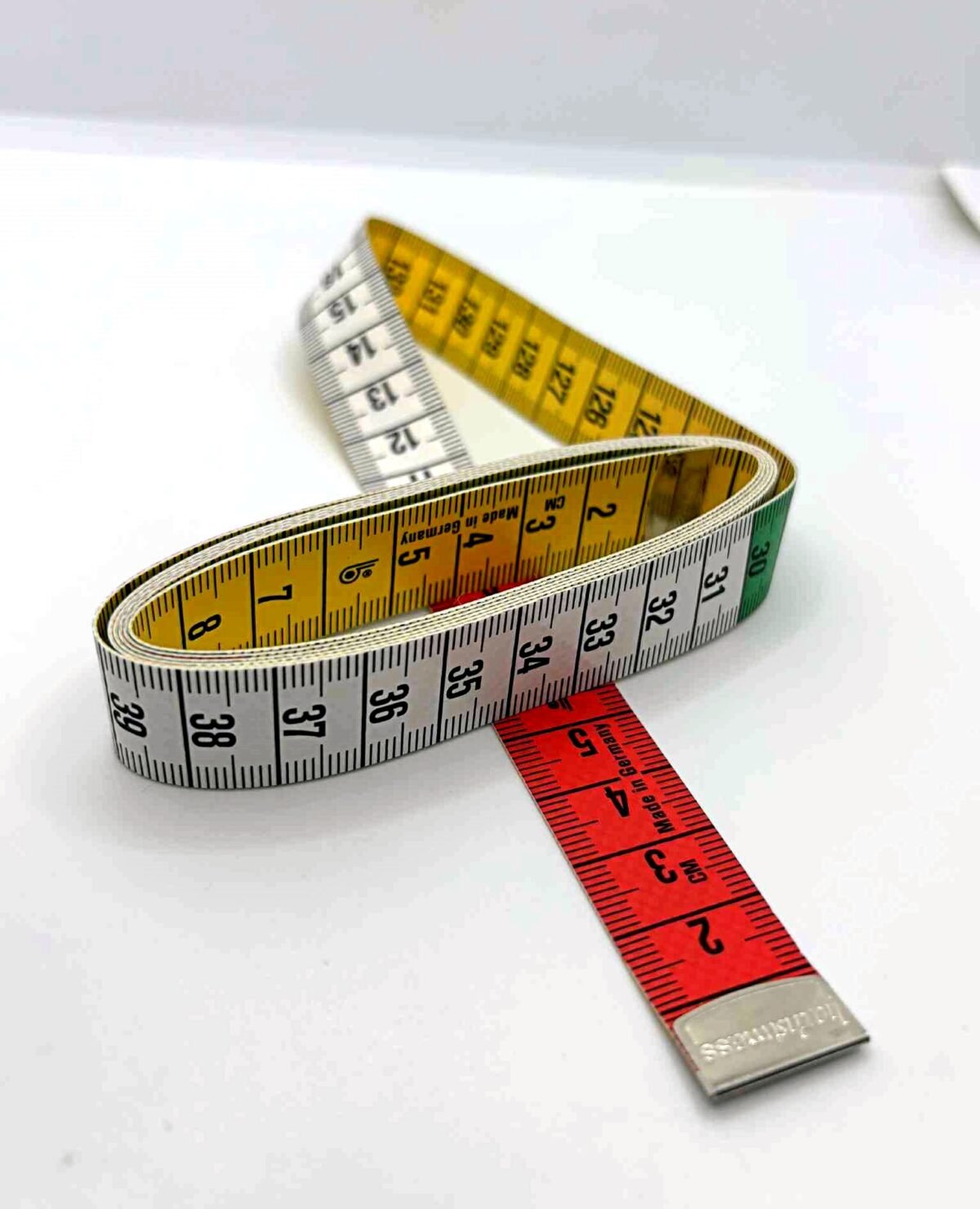 Tai standartinė centimetrinė juostelė, abiejose pusėse yra sužymėti milimetrai bei centimetrai
