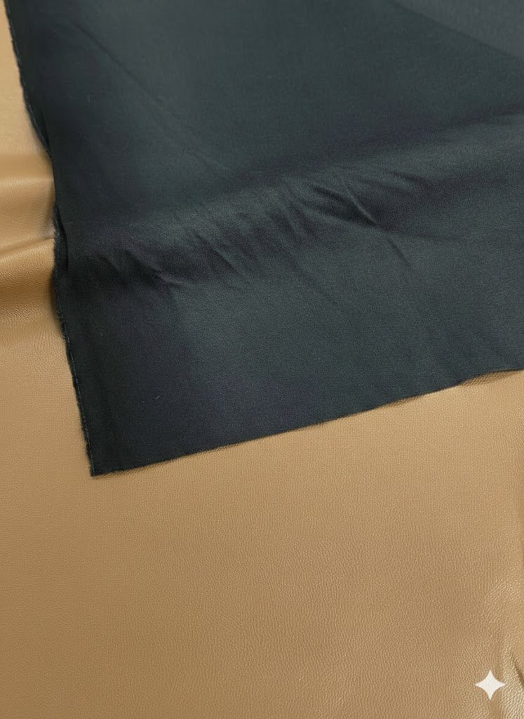 Ši dirbtinė oda yra minkšta, elastinga ir gerai krintanti, todėl patogi dirbti ir leidžia išgauti estetiškas, švarias formas. Vidutinis elastingumas užtikrina, kad audinys prisitaikys prie silueto, tačiau išlaikys tvarkingą struktūrą. Dėl šių savybių smėlio rudos spalvos dirbtinė oda audinys dažnai pasirenkamas drabužių siuvimui – kelnėms, sijonams, suknelėms ar švarkams, kai reikalingas balansas tarp formos ir patogumo.